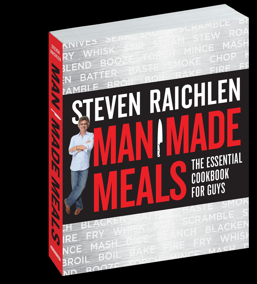 Man Made Meals představuje nástroje a techniky grilování (Kupodivu se v ní dovíte, že bez nožů a ohně to nepůjde.). Pomůže vám osvojit si tajemství profesionálů – jak v kuchyni zvládat několik věcí najednou, jak si všechno připravit před vlastním vařením, jak průběžně uklízet. Naučí vás rozumět chutím a přípravkům, které je umí zvýraznit, jako jsou ančovičky a polévka, ale především vám předá základní kuchařské vědomosti: jak otevírat ústřice, jak správně svázat před pečením kuře, nebo jak na steak, aby byl správně propečený. Nabídne vám zásobu skvělých receptů (Je jich na 300.) od snídaní po dezerty. Budete vědět, jak oslnit vaši drahou polovičku nad grilem během rande, nebo jak se stát hrdinou grilování v očích své rodiny, nebo si jednoduše uvařit s radostí sám pro sebe. V knize nechybí recepty pro opravdové muže, např. Blowtorch Oatmeal (ovesná kaše), Fire-Eater Chicken Wings (kuřecí křidélka), Black Kale Caesar (salát Caesar z černé kapusty), Down East Lobster Rolls (humří rolky), Skillet Rib Steak, Porchetta, Finger-Burner Lamb Chops (jehněčí kotlety), Yardbird’s Fried Chicken (smažené kuře), Blackened Salmon (losos), Mashed Potatoes Three Ways (šťouchané brambory) a Ice Cream Floats (zmrzlina pro dospělé).