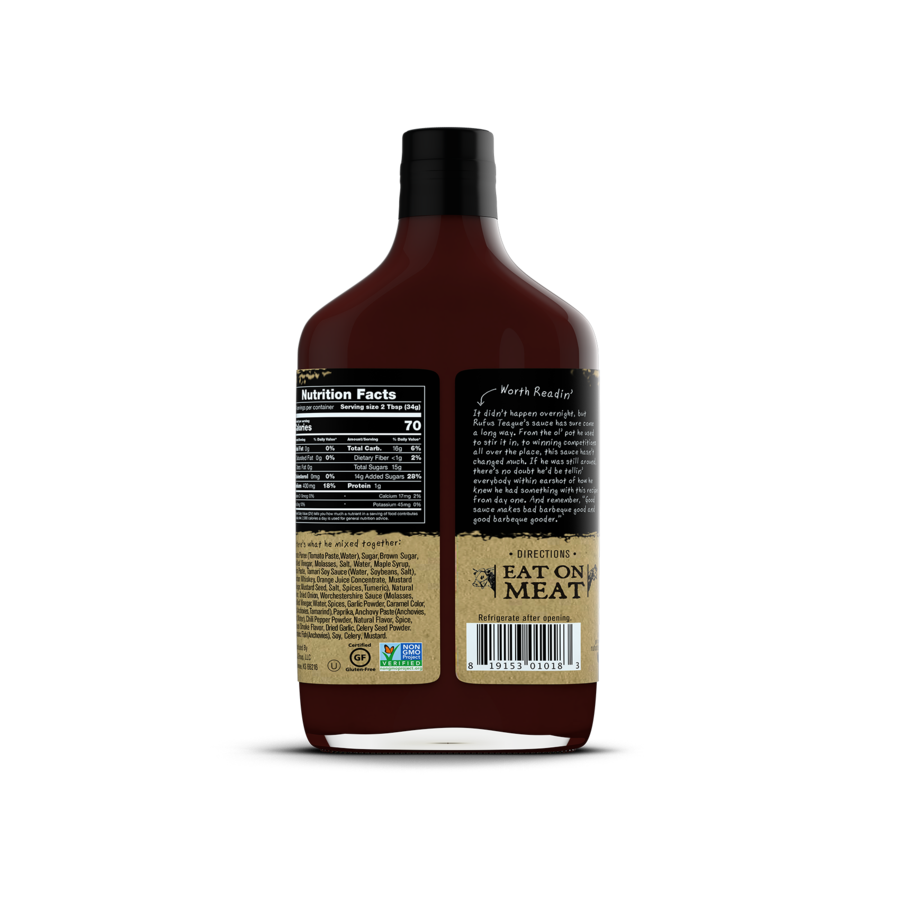 Starý dobrý Rufus měl rád whisky. Jednoho dne si trochu přihnul a rozhodl se, že do omáčky přidá kapku alkoholu. Potom ještě omáčku dochutil trochou javorového sirupu, aby to „nepatrně přisladil“. Není žádným překvapením, že si omáčku oblíbil a pokračoval v její výrobě. Výsledkem je něco, čeho se nedokáže nabažit ani naprostý abstinent.