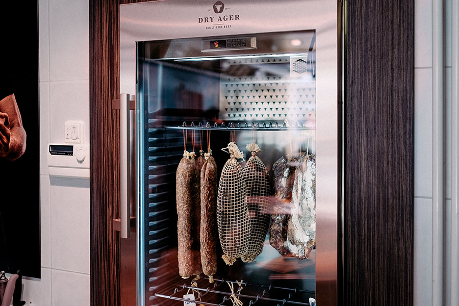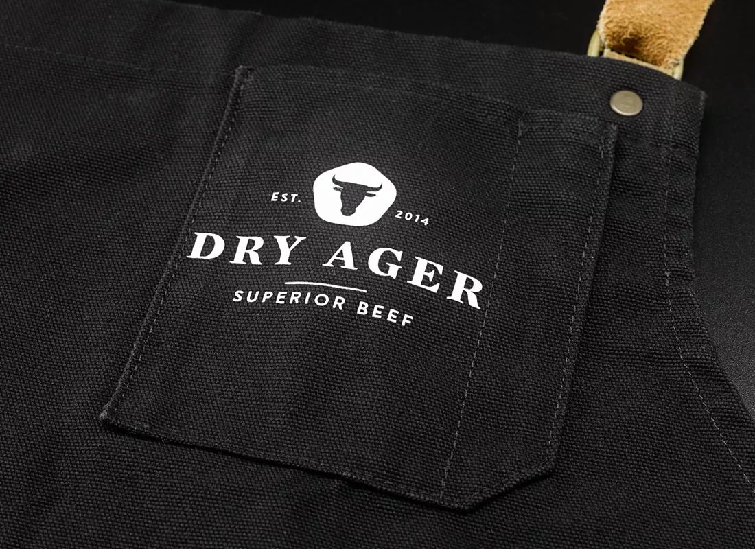 Ručně vyrobená zástěra v Kanadě! Stylová vysoce kvalitní grilovací a kuchyňská zástěra s potiskem DRY AGER®. Se 2 velkými předními kapsami + kapsou na iphone/pero. Vyrobeno ze 100% bavlny a přírodní kůže (lze ji prát)