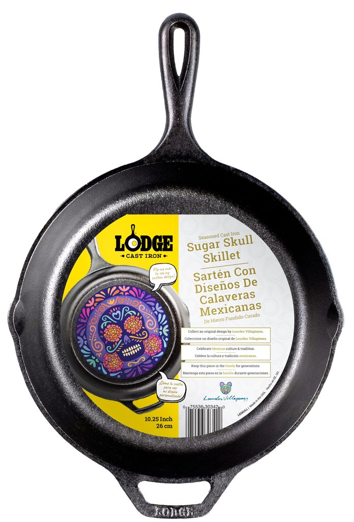Tato litinová pánev Lodge 26 cm Sugar Skull s výrazným reliéfem lebky z mexické tradice slavíchen Día de los Muertos je nejen stylovým doplňkem, ale také naprosto funkčním nástrojem. Má vnitřní průměr dna 22 cm, celkový průměr 26 cm, výšku 4,7 cm a váží robustních 2,4 kg. Vyrobená z čisté litiny, předsezonovaná sójovým olejem, nabízí vynikající tepelnou vodivost a akumulaci. Maso usmažíte na vysokou teplotu bez ochlazení pánve.