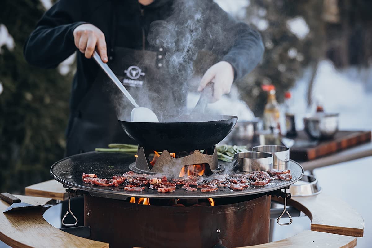 - Uzení: Pokud máte chuť na uzené pokrmy, zkuste přidat dřevěné štěpky do ohně. Ideální dřevo pro uzení je např. hickory nebo javor.