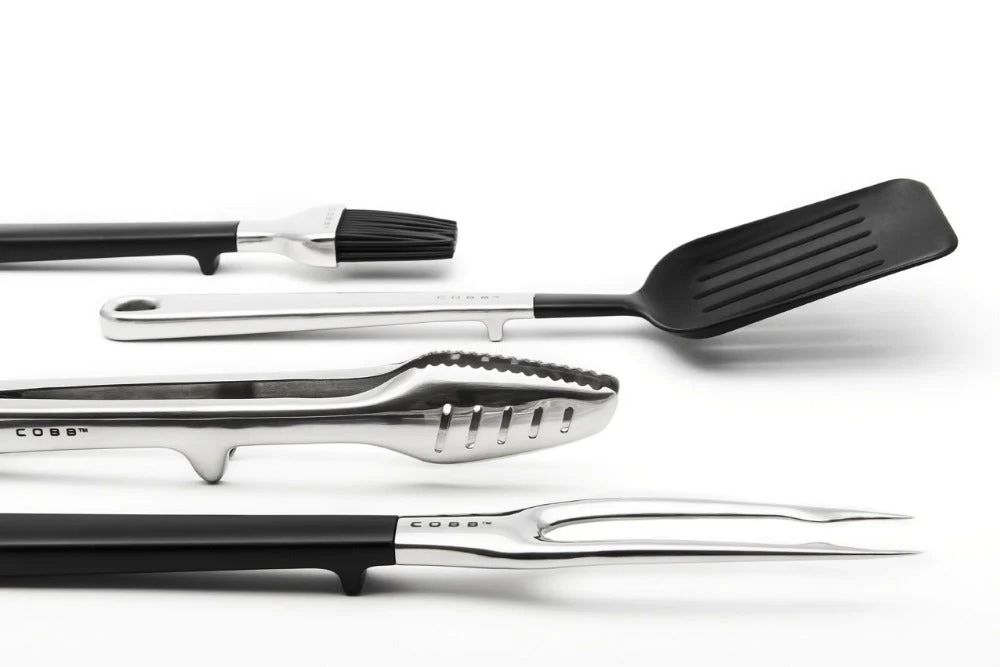 Grilování není jen o jídle, je to zážitek, který spojuje přátele a rodinu. S grilovací sadou COBB si užijete každou chvíli u grilu a posunete své kulinářské dovednosti na novou úroveň. Tato sada obsahuje čtyři nezbytné nástroje, které vám usnadní přípravu a manipulaci s pokrmy, a to i nad otevřeným ohněm.